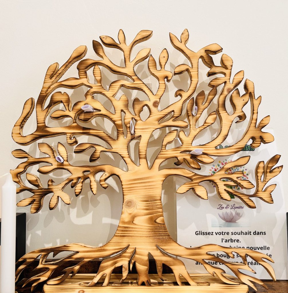 Zen & Lumière, c’est aussi un espace vivant où chacun peut déposer un souhait dans l’Arbre à souhaits. À chaque nouvelle lune, une bougie est allumée pour accompagner vos intentions. Je mets tout en œuvre pour créer un lieu apaisant, propice à l’introspection et à l’harmonie.